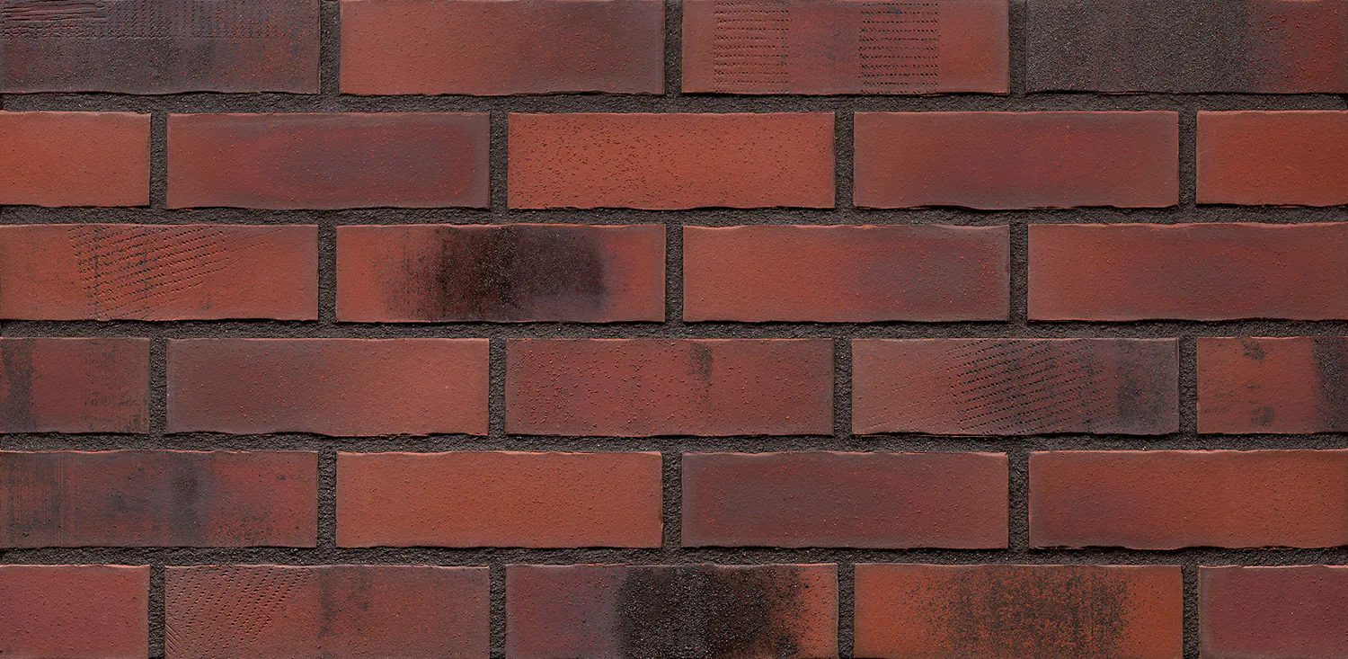 Płytka Old Factory HF50 od King Klinker to klinkierowa płytka w czerwono-grafitowej tonacji z wyraźnym, nieregularnym cieniowaniem, które nadaje jej surowy, industrialny charakter. Kolorystyka jest zróżnicowana, z wyraźnym kontrastem między czerwienią a grafitowymi akcentami, co tworzy efekt postarzonej, fabrycznej cegły. Powierzchnia posiada naturalną, ręcznie formowaną fakturę typową dla klinkieru, podkreślającą autentyczność materiału.